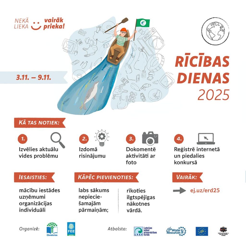 2025. gadā Rīcības dienas notiks no 3. - 9. novembrim. Kopīgs sauklis šogad - "Nekā lieka - vairāk prieka!"